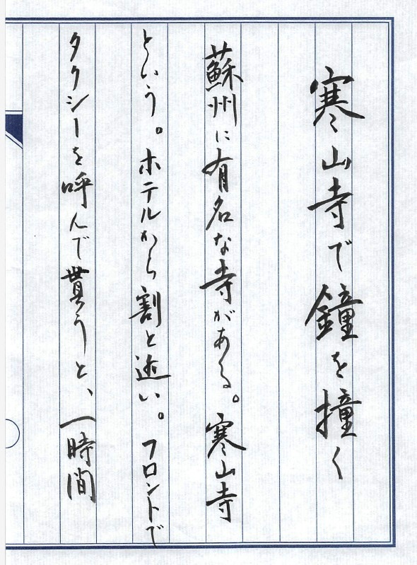 最近、紙に凝りだし、筆で書いたこの原稿用紙は日本橋の老舗紙専門店、榛原(はいばら)で求めたものだ。永井荷風が日記「断腸亭日乗」を書いた日乗箋(榛原製青色十行罫紙)と同じ紙だという。
